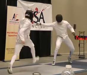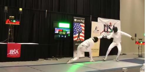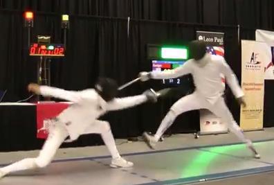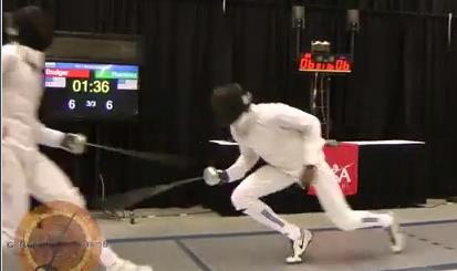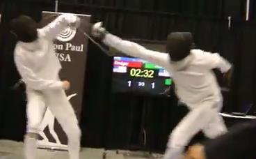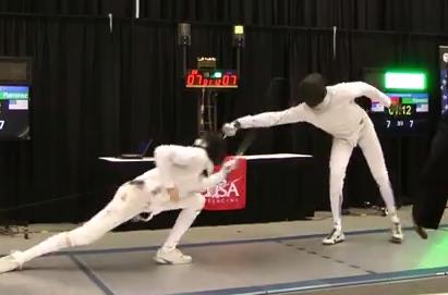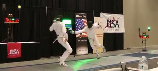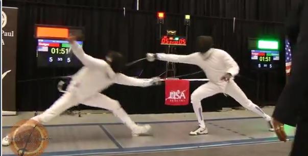 All images are screen captures from CyrusOfChaos’s recording of the final. Thanks to Andrew Fischl for providing a valuable service to all fencers with his video channel.