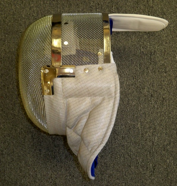 A mask may fit the vertical circumference of your head, but may not fit quite as well in other areas. Masks can be adjusted to fit your individual head.When you first receive the mask, the “tongue”of the mask may be completely straight. The tongue of the mask is really the thing that keeps your head inside the mask when you’re moving back and forth on strips, so prior to fencing, the tongue must be bent down to a comfortable position to ensure a safe fit. The exact position of the tongue varies from person to person. Use the following technique to bend the tongue to your liking: