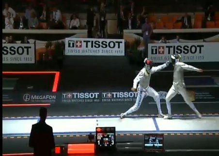 Cassara provided a much less dramatic second semi-final, destroying Victor Sintes (FRA). Cassara hit Sintes at will and opened up an 8-0 lead, closing the first period up 10-4. Towards the end of the first period and into the second period Sintes finally attempted to change tactics, but it was all too little too late and Cassara scored 5 straight touches to end the bout 15-5.