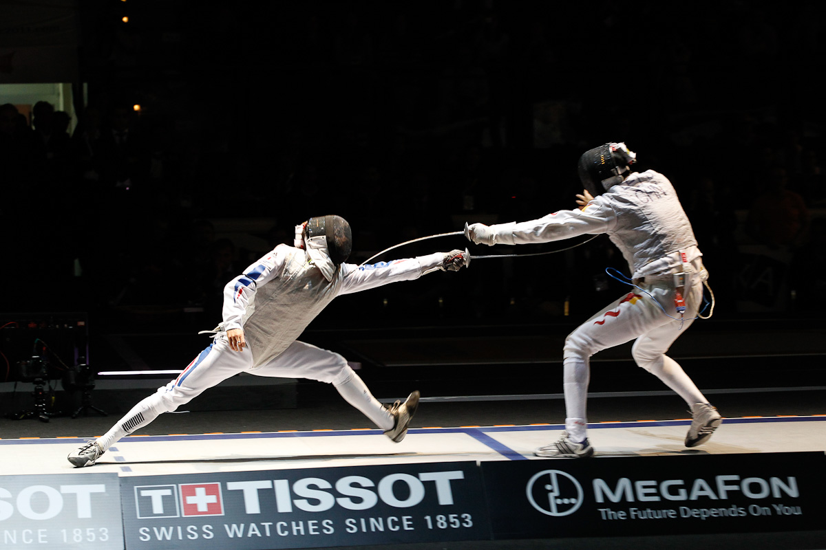 France suffered a heartbreaking loss to China in the finals of the Men’s Team Foil final at the 2011 Fencing World Championships. Just one bout earlier Jianfei Ma (CHN) dominated Victor Sintes (FRA) 12-4 to put the Chinese team up 40-35 going into the final bout of the match.