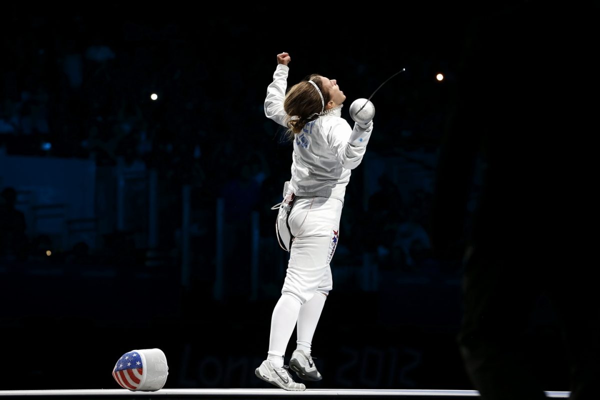 After 9 full bouts the bronze medal match was locked in a 30-30 deadlock at the end of regulation. Priority for the overtime period went to Courtney Hurley, closer for the US team. Hurley and Anna Sivkova (RUS) jockeyed for position on the strip, then in a flurry of action both fencers missed their marks, but Hurley would land the remise and deliver the first Olympic medal for US Fencing.